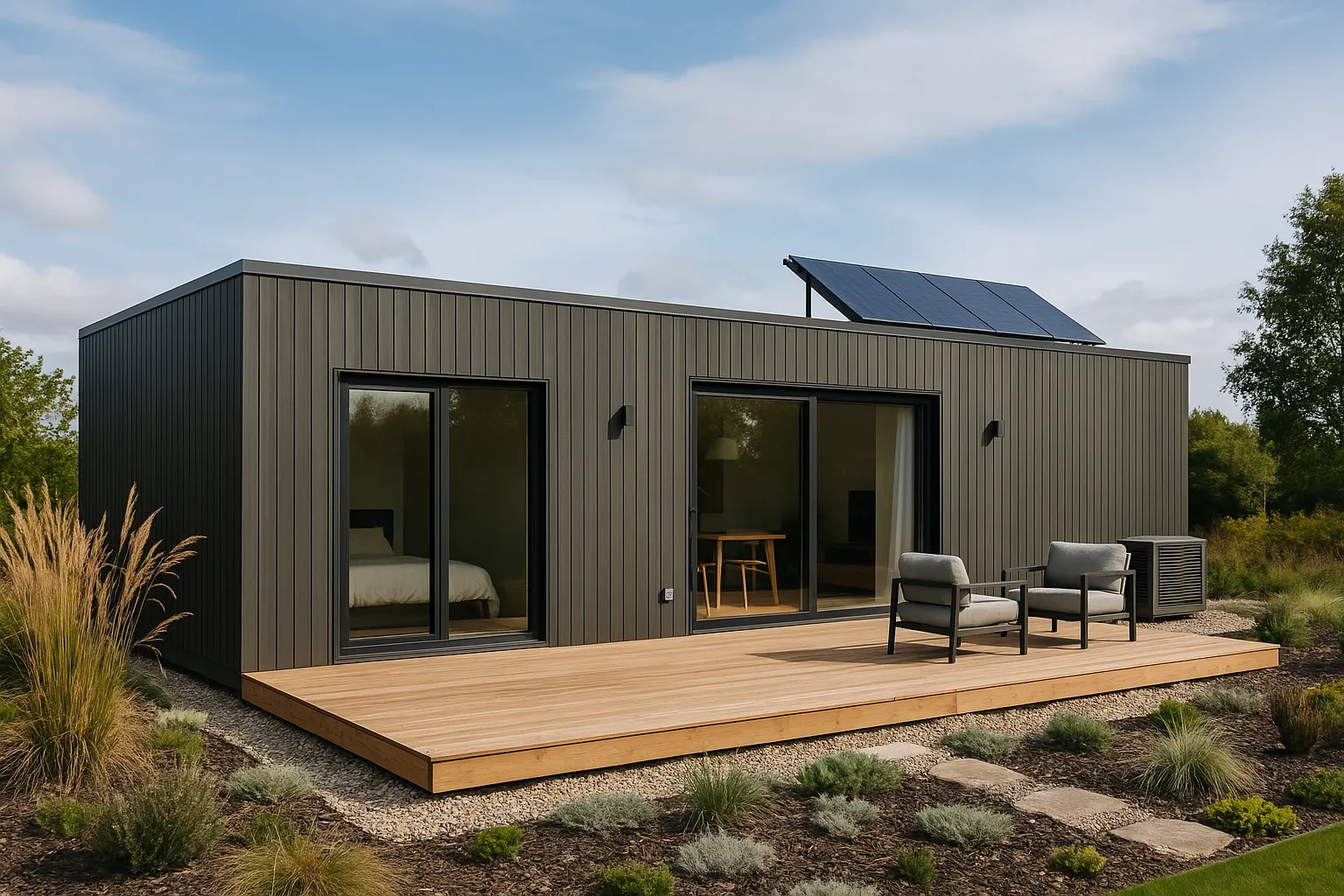 Modulāro māju priekšrocība ir arī pielāgojamība atjaunojamās enerģijas risinājumiem. Pateicoties kompaktajai konstrukcijai un plakanajiem jumtiem, šīs mājas ir ideāli piemērotas saules paneļu uzstādīšanai. Saules enerģija ļauj samazināt elektroenerģijas rēķinus un padara māju neatkarīgāku no ārējiem piegādātājiem.